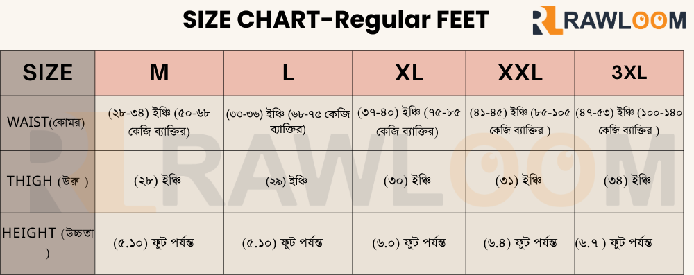 3XL—(কোমর ৪৭ -৫৩)-(১০০-১৪০ কেজি ব্যাক্তির)-উচ্চতা ৬.৭ ফুট পর্যন্ত